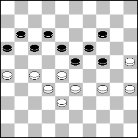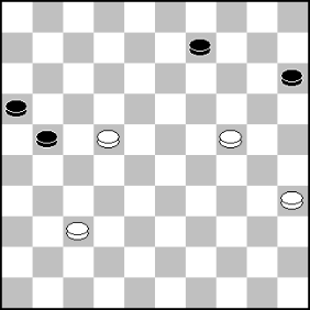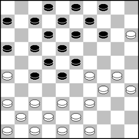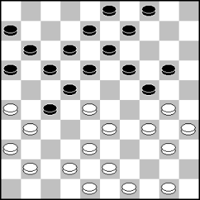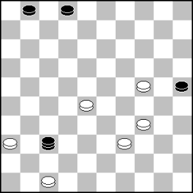 Zwart aan zet speelde (9-13?). Die zet ligt voor de hand, omdat zwart daarmee beide voorste schijven van wit afstopt. Maar het blijkt de verliezende zet te zijn. Wit loopt met zijn schijf van 35 naar 20 zonder dat zwart daar iets aan kan doen. Na het offeren van de schijf op 13 staat zwart verloren.