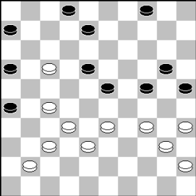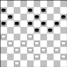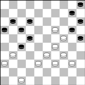 Zwart kan het nog gelijk houden met (12-17), 31-26 (13-18), 39-34 (18-23), 27-22 en nu het verrassende (8-13), 22×11 (16×7), 26×17 (7-12), 17×8 13×2 en wit heeft weinig plezier van zijn schijfje voorsprong.