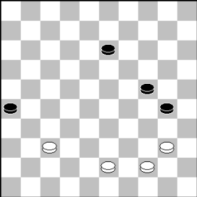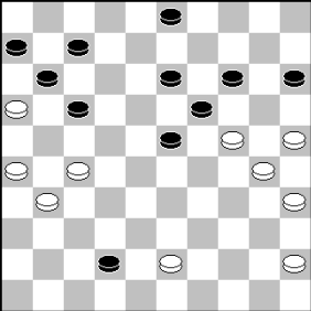 Zwart staat al geruime tijd een schijf achter, maar dreigt hier met (24-29). Als wit nu 36-31 speelt, kunnen de schijfjes snel terug in het doosje, maar gespeeld werd: 33-28? Dit biedt zwart een ontsnapping: (18-22), 27×29 (24×22), 32-27 (22×31), 36×27 (11-16), 45-40 (20-24??). [Hoezeer deze zet ook voor de hand ligt, voor de remise had zwart (19-23!), 40-34 en (14-19×10) moeten spelen.] In de partij volgde: 40-34 (24-29), 34×23 (19×28), 30-24 en de aanval van wit is winnend.