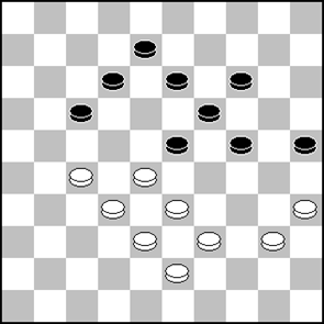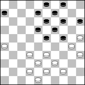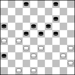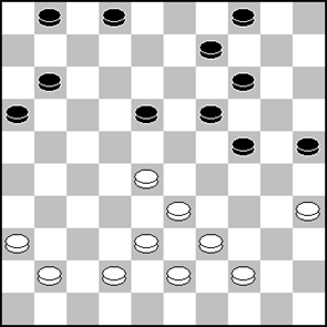 · (8-12). De actie 16-11 (17×6), 35-30 (24×35), 33-29 ziet er kansrijk voor wit uit, maar na (12-17), 29×20 (25×14) heeft zwart nog veel tegenspel voor de schijf achterstand.
