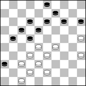 Zwart zag een fraaie doorgang naar dam: (23-29!?). Na het antwoord 33-28?? haalde Jack zijn gelijk: de weg naar dam lag winnend open. Om onduidelijke redenen offerde zwart eerst met (18-22) een schijf om daarna pas (29-34) te spelen. Zwart heeft nu geen voordeel meer, maar het foutenfestijn gaat nog even verder: 39-33 (34-40), 44-39?? De definitieve fout van wit. Hij had de stand gelijk kunnen houden met: 43-39!! (40×49), 26-21. De zwarte dam gaat weer van het bord met ongeveer gelijk spel.