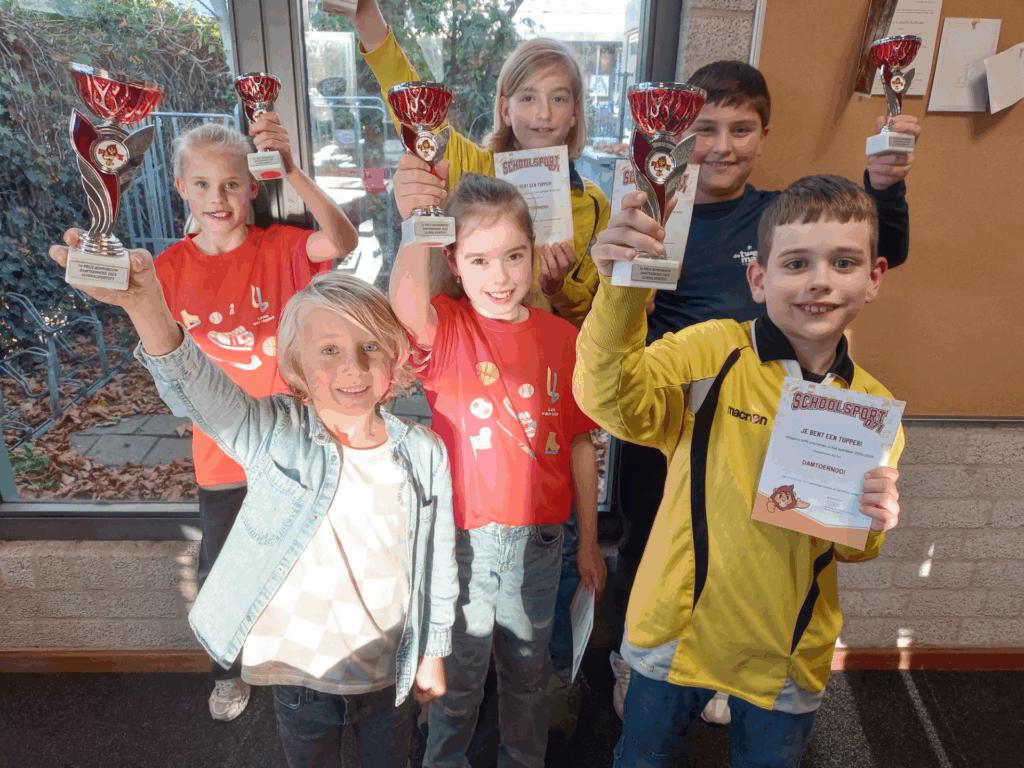 Er waren 3 bekers voor de onderbouw en 3 bekers voor de bovenbouw en die zijn als volgt verdeeld: