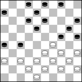 Ik gaf mezelf niet veel kans om dit eindspel te winnen met drie schijven op een rij midden op het bord. Maar KR geeft aan dat wits enige remise-zet is: 4-15. Iedere zet op de lijn 4-36 verliest! Tijdens de partij dacht ik nog dat ik na 4-15 zou reageren met (16-2), maar na ‘gewoon’ 15-4 komt zwart niet verder. In de partij speelde wit 4-31? (23-29!). [31-18 is nu verhinderd door (19-24) en (24-29).] 31-26 (29-34!). [26-12 is nog steeds verhinderd. Op 26-17 volgt (16-2) en op 26-8 volgt (28-32).] 26-3 (34-40). De tweede dam voor zwart komt in zicht en daarmee de overwinning. Zes zetten later gaf wit op.
